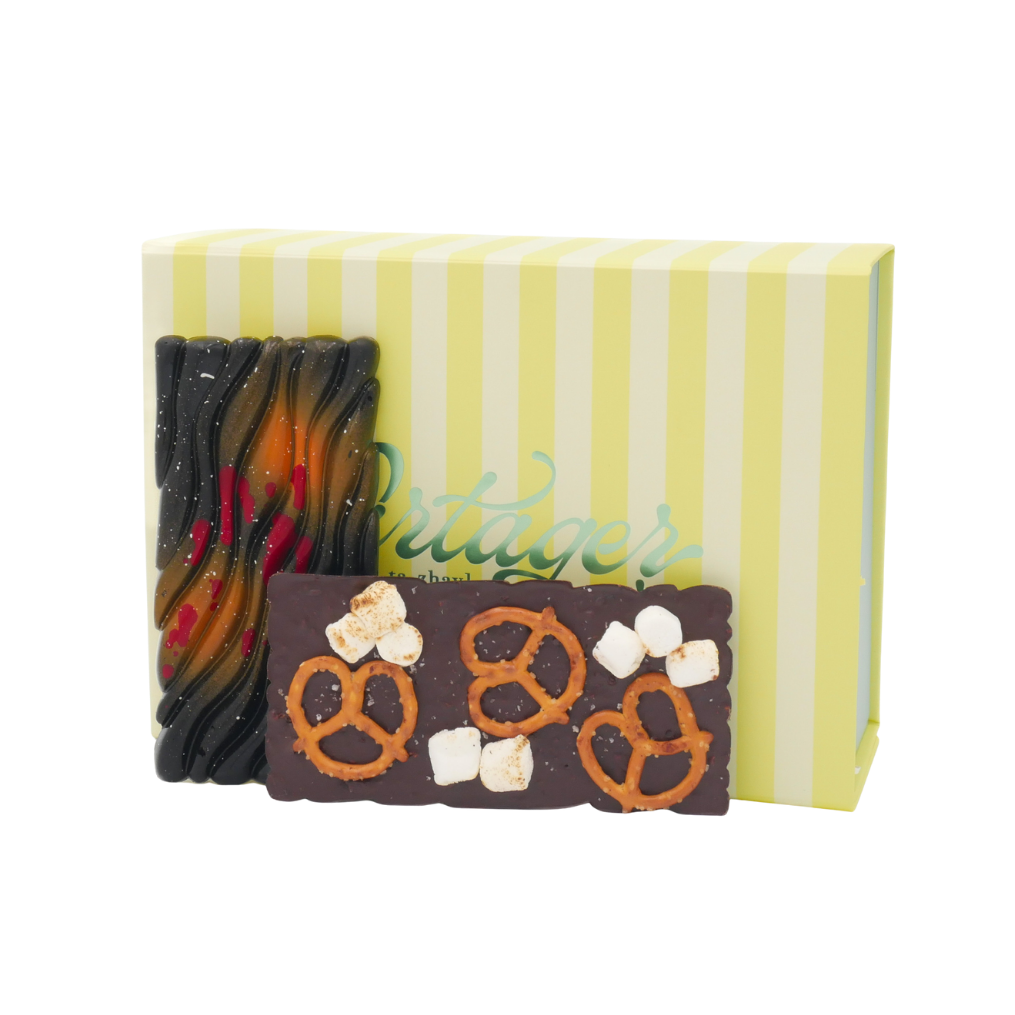 Partager’s Cinnamon S’mores bar brings together 64% dark chocolate, cinnamon graham cracker, toasted marshmallow, and salted pretzel. This chocolate bar is a cozy, nostalgic bite, no campfire required. Handcrafted in small batches in our Palm Beach chocolate kitchen.